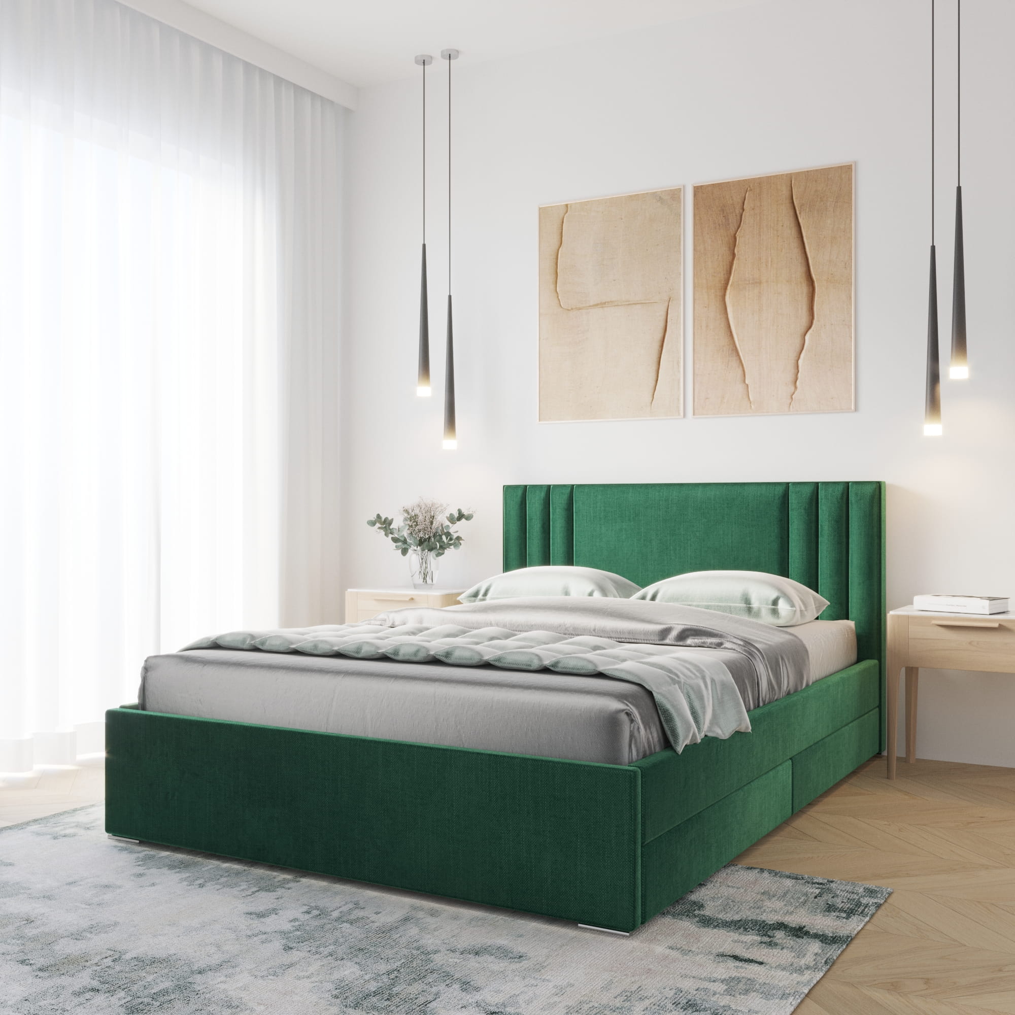 Łóżko Tapicerowane z Szufladami i Stelażem Butelkowa Zieleń