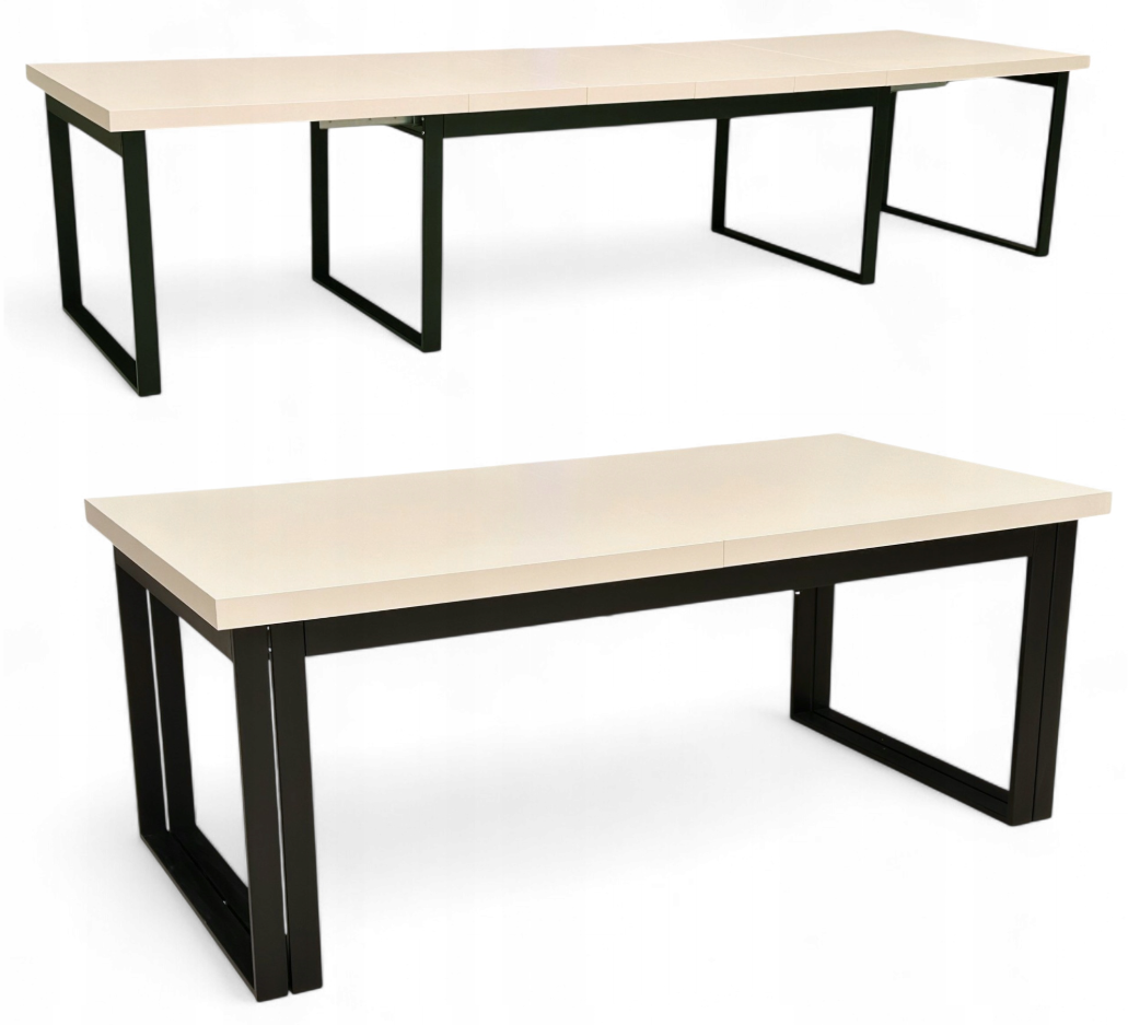 ✨Stół Duży Czarny + Kaszmir 100x200 cm – Rozkładany do 400 cm | Podwójne Metalowe Nogi✨