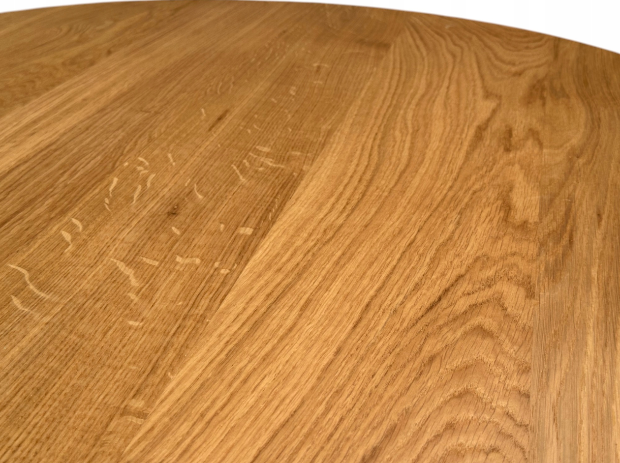 Ten okrągły, nierozkładany stół o średnicy 100 cm łączy solidny blat z drewna dębowego z eleganckimi nogami wykonanymi z dębu, tworząc ponadczasowy mebel do jadalni, kuchni lub salonu. Wykończenie olejowoskiem podkreśla naturalne piękno słojów drewna i chroni powierzchnię stołu, zapewniając trwałość na lata.