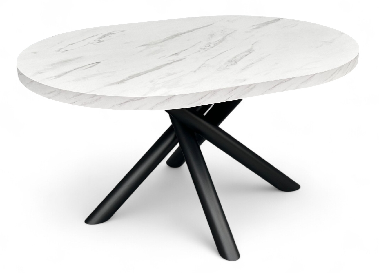 Stół Owalny 100x140 cm | Marmur Biały + Czarne Designerskie Nogi