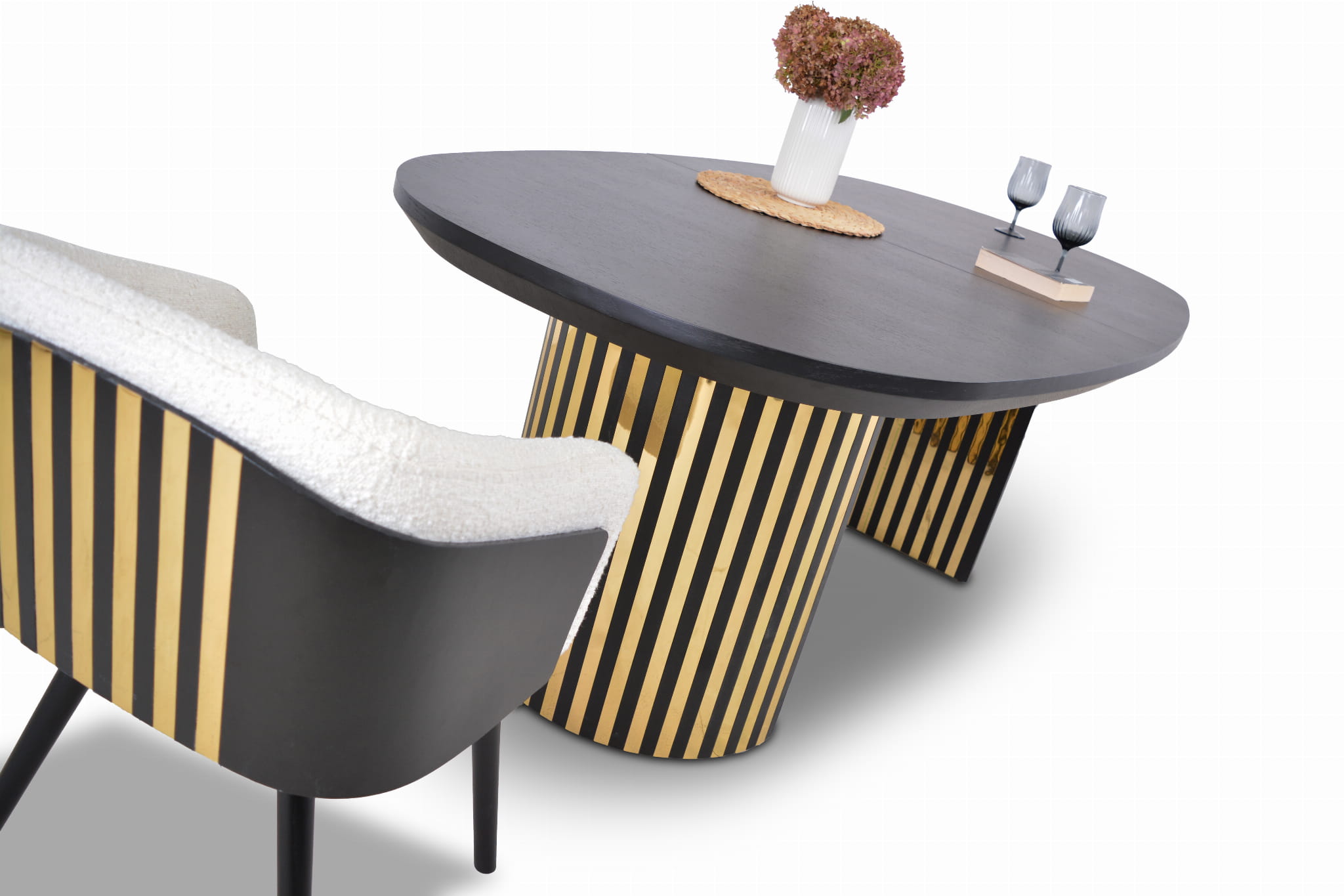 ▪️ Kolorystyka: Czarny blat + czarne nogi ryflowane ze złotą listwą ABS.