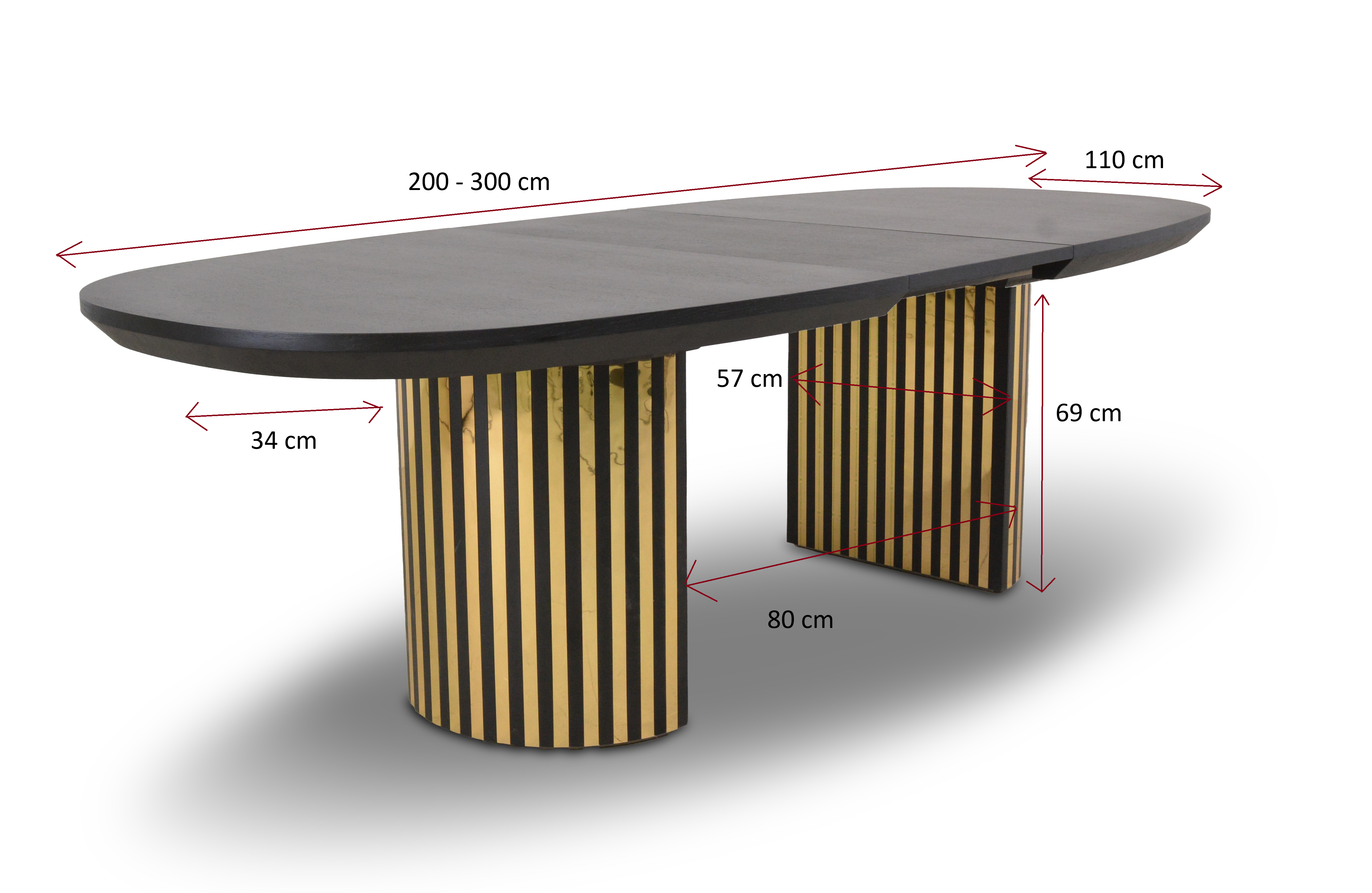 Stół fornirowany MONICA GLAM OWALNY o długości 200 cm rozkładany do 300 cm