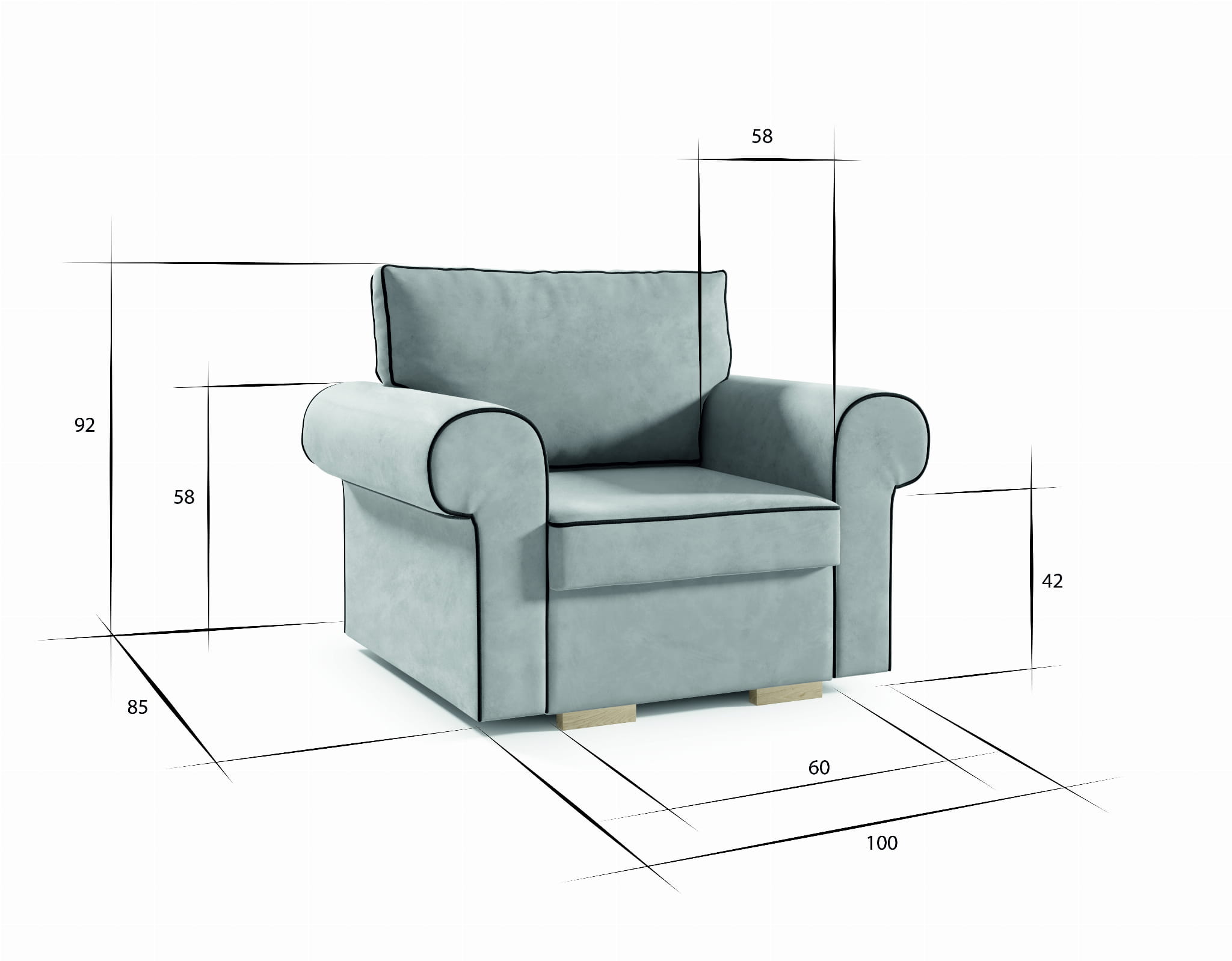 ▪️ Głębokość siedziska do poduszek: 58 cm