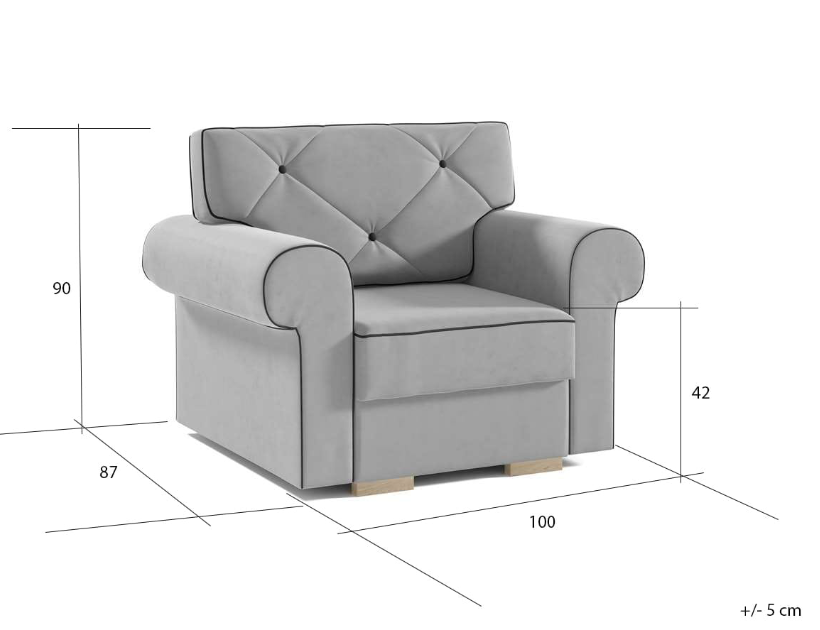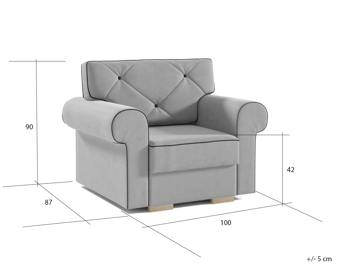 ✅Stylowy design: Pikowane oparcie i podłokietniki nadają fotelowi wyjątkowego charakteru.