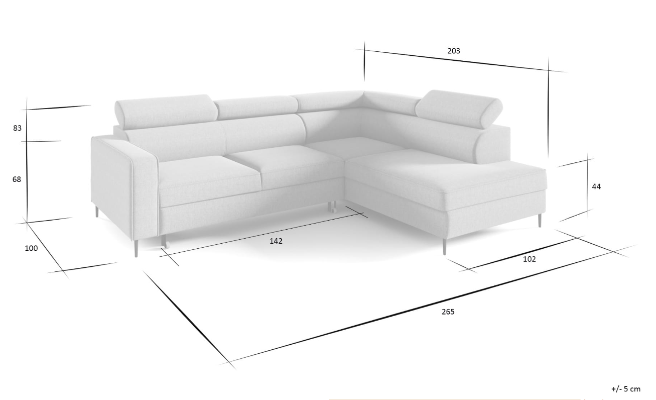 Narożnik tapicerowany VEROS z FUNKCJĄ SPANIA i POJEMNIKIEM NA POŚCIEL – ELEGANCKI DESIGN I WYGODA