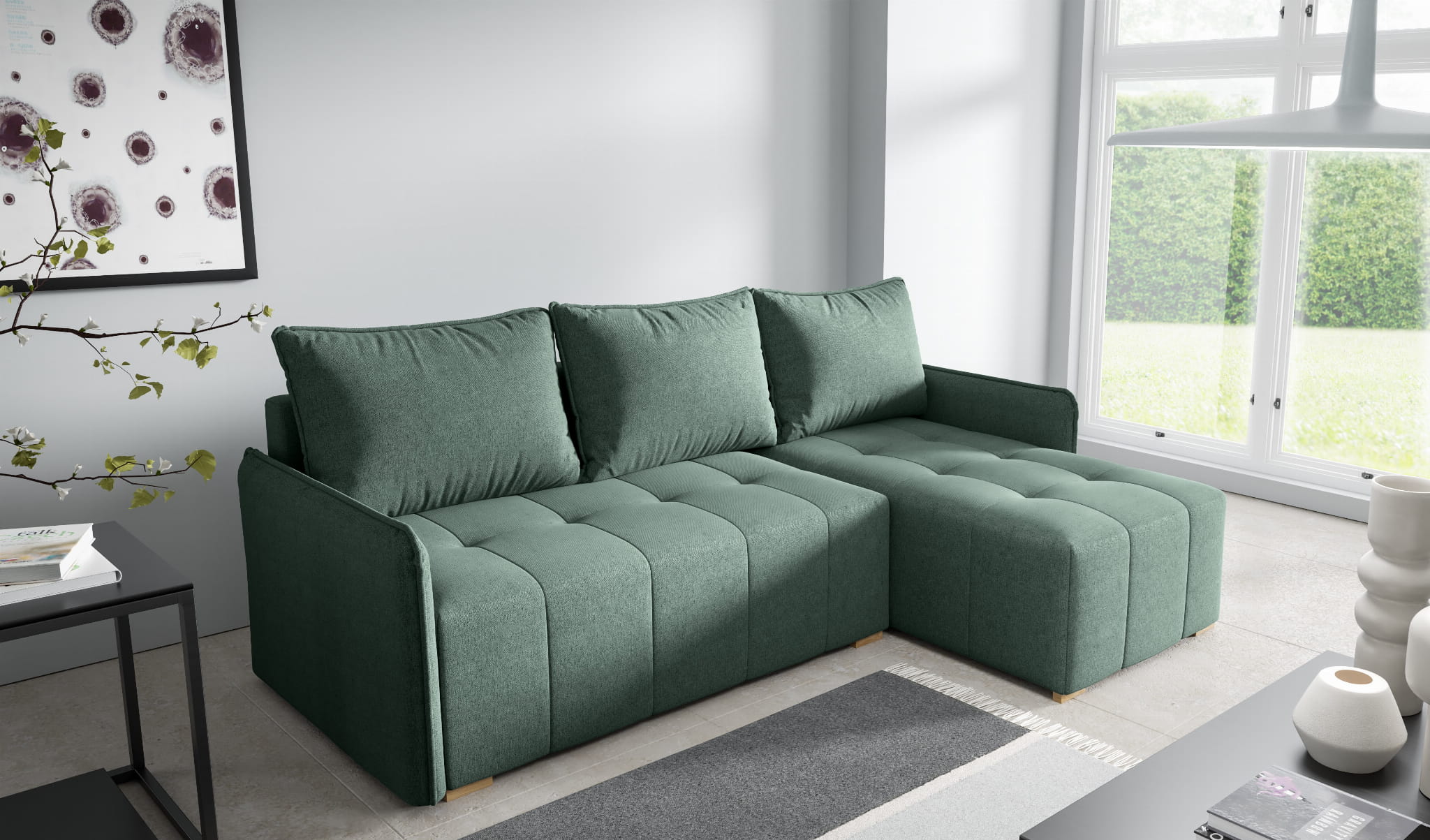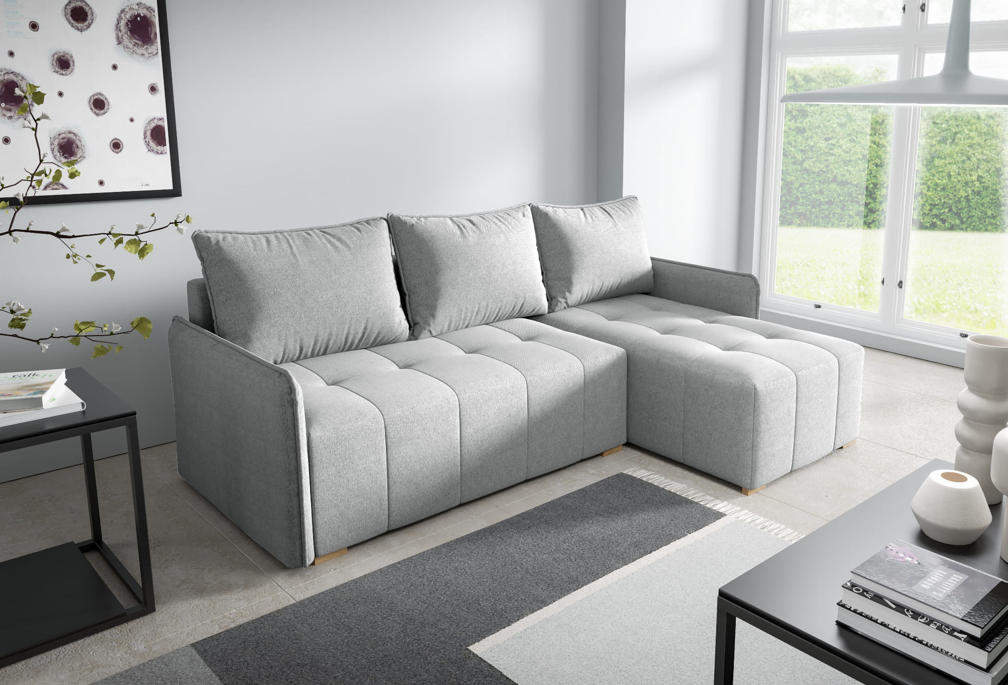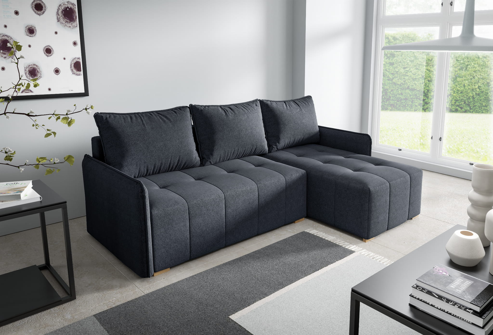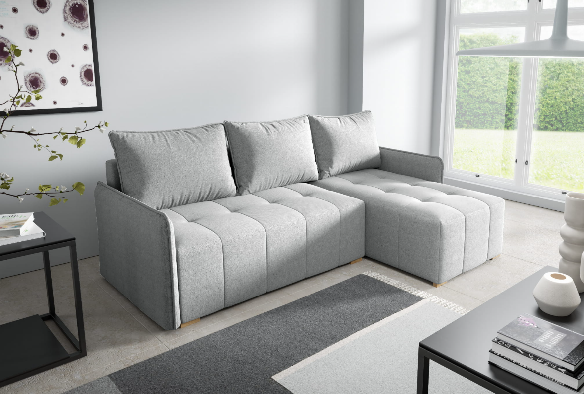 Narożnik tapicerowany GRENADA z FUNKCJĄ SPANIA i POJEMNIKIEM NA POŚCIEL – ELEGANCKI DESIGN I WYGODA