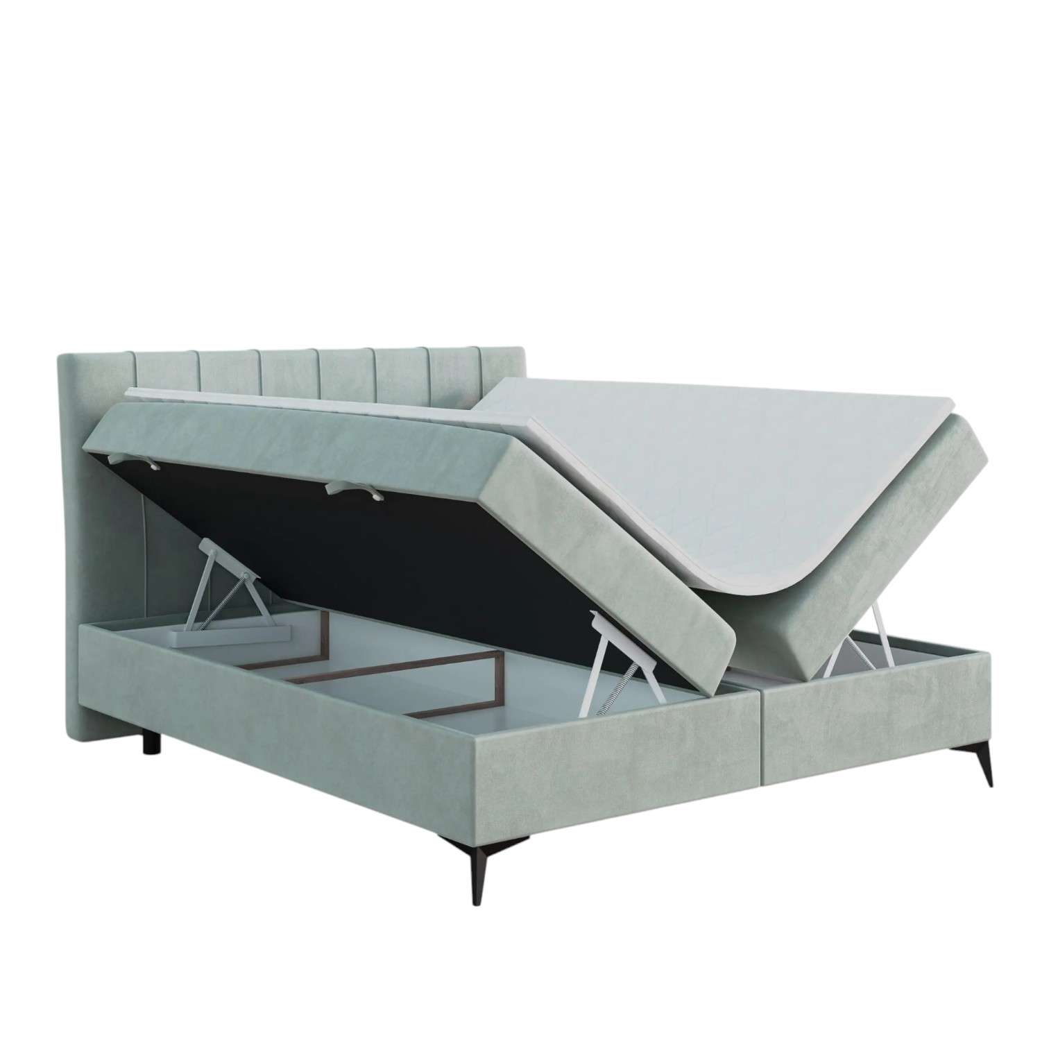 Miętowe Łóżko Kontynentalne LINET 160x200 cm z Pojemnikiem na Pościel