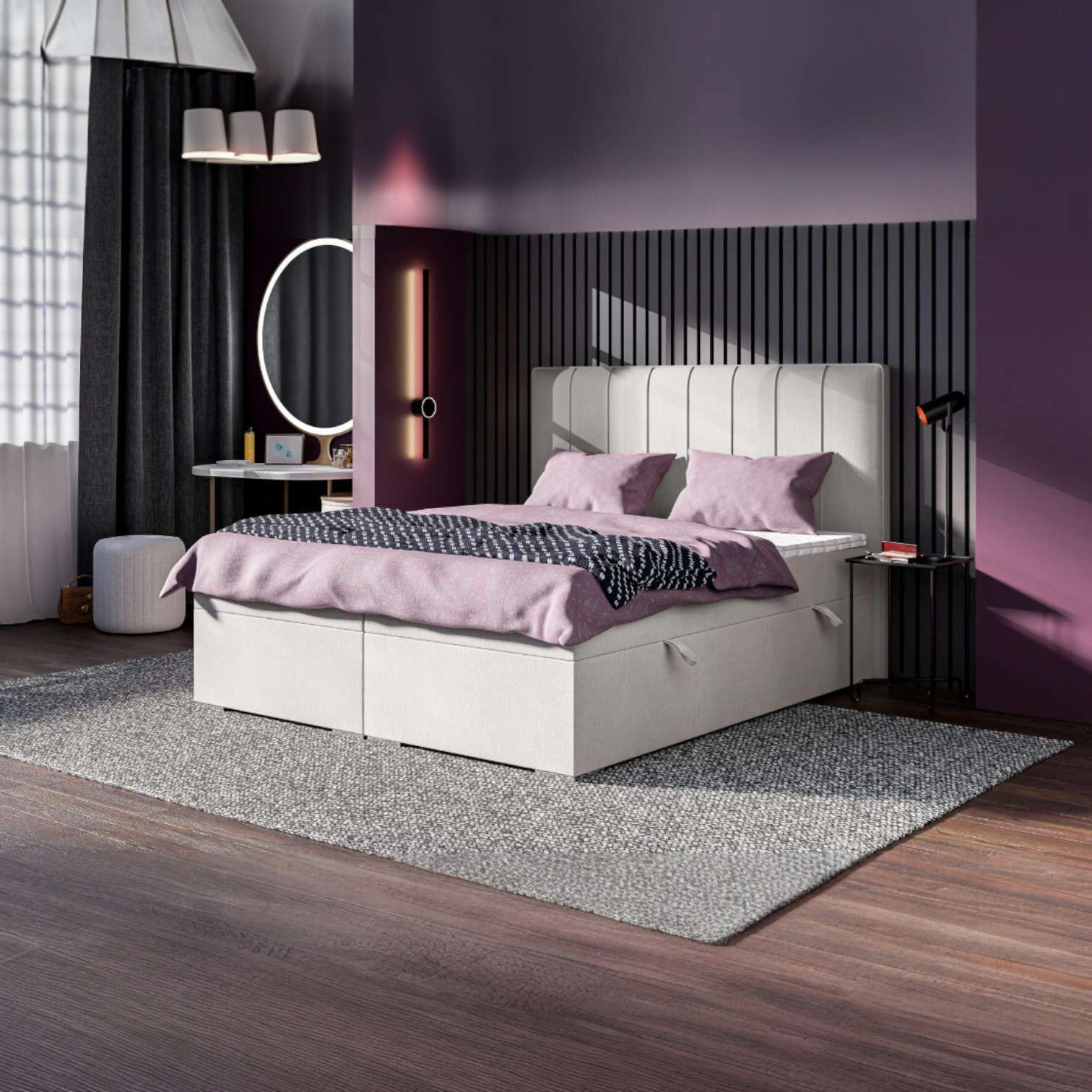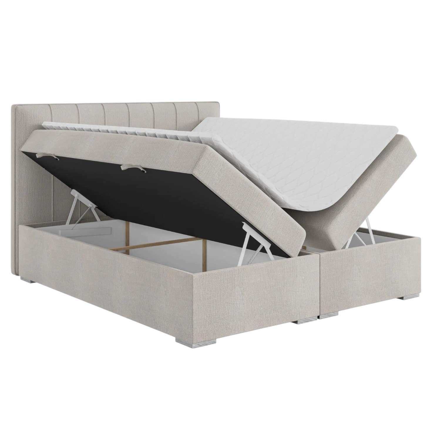 ▪️Typ łóżka: Boxspring z jednym lub dwoma pojemnikami na pościel, otwieranymi na boki