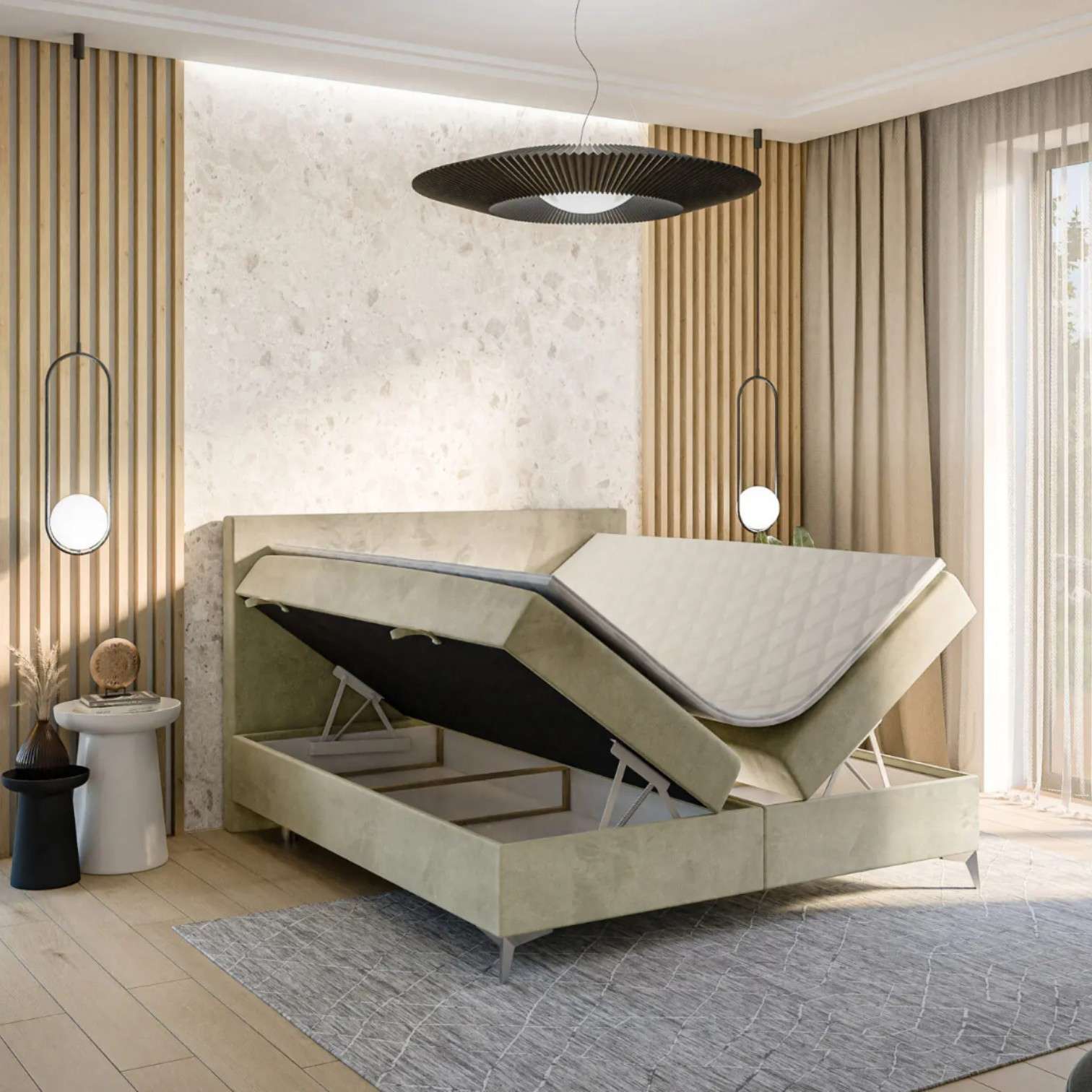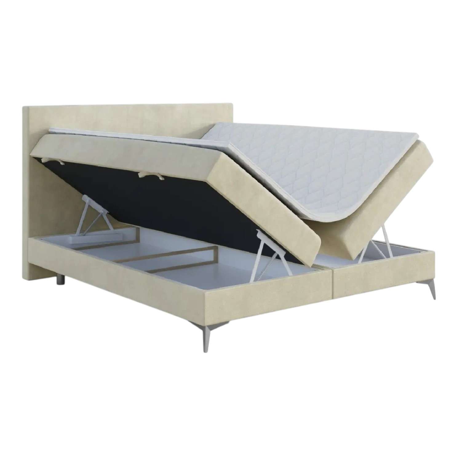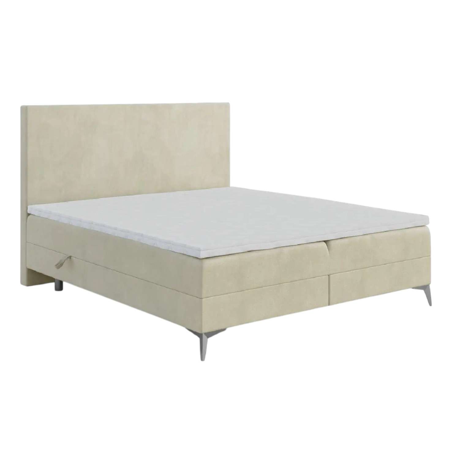Beżowe Łóżko Kontynentalne RION 160x200 cm z Pojemnikiem na Pościel