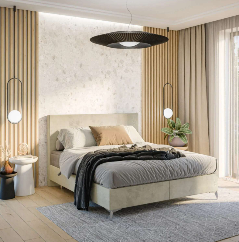 ▪️Nowoczesne wezgłowie – prosta forma bez przeszyć, dodająca minimalistycznego uroku.