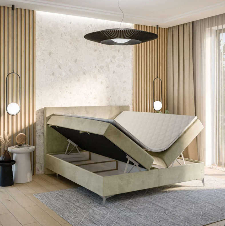 ▪️Konstrukcja typu boxspring – dwie osobne skrzynie z pojemnikami otwieranymi na boki.