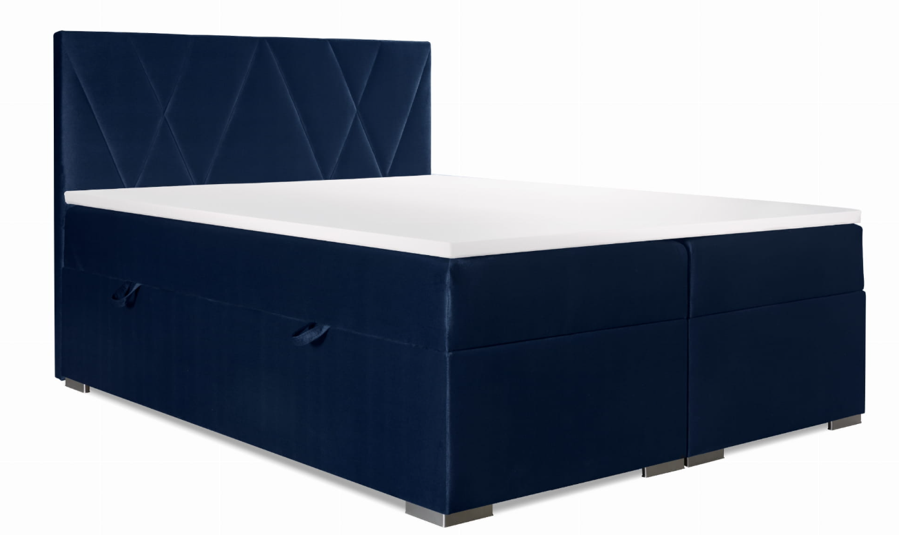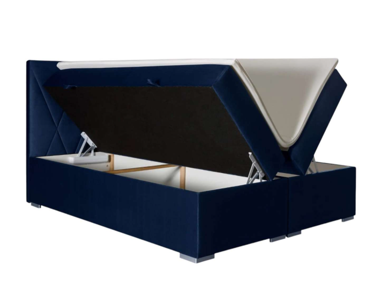 Niebieskie Łóżko Kontynentalne LAURA 180x200 cm z Pojemnikiem na Pościel