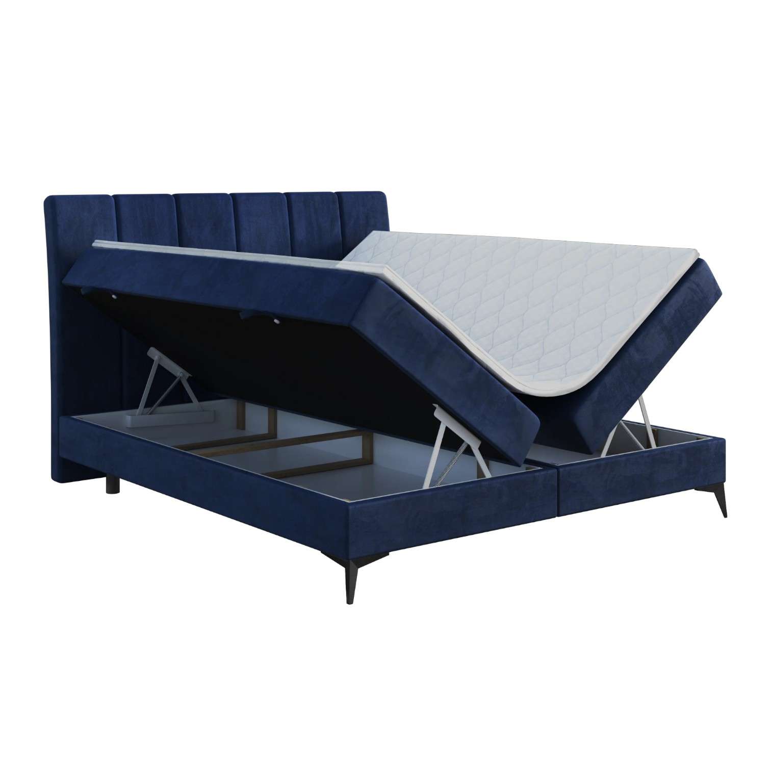 Granatowe Łóżko Kontynentalne ASTORIA 160x200 cm – Luksus w Twojej Sypialni