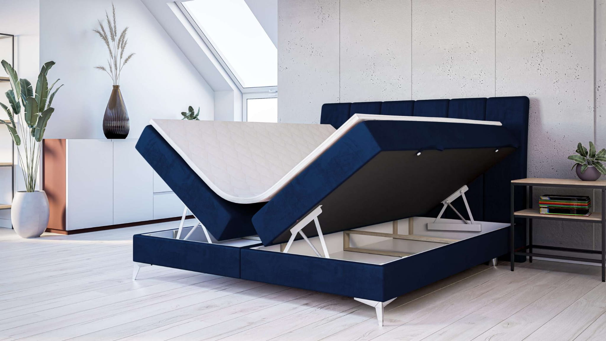 ▪️Typ łóżka: kontynentalne boxspring z pojemnym schowkiem na pościel