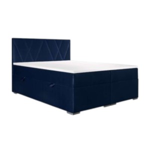 Niebieskie Łóżko Kontynentalne LAURA 160x200 cm z Pojemnikiem na Pościel
