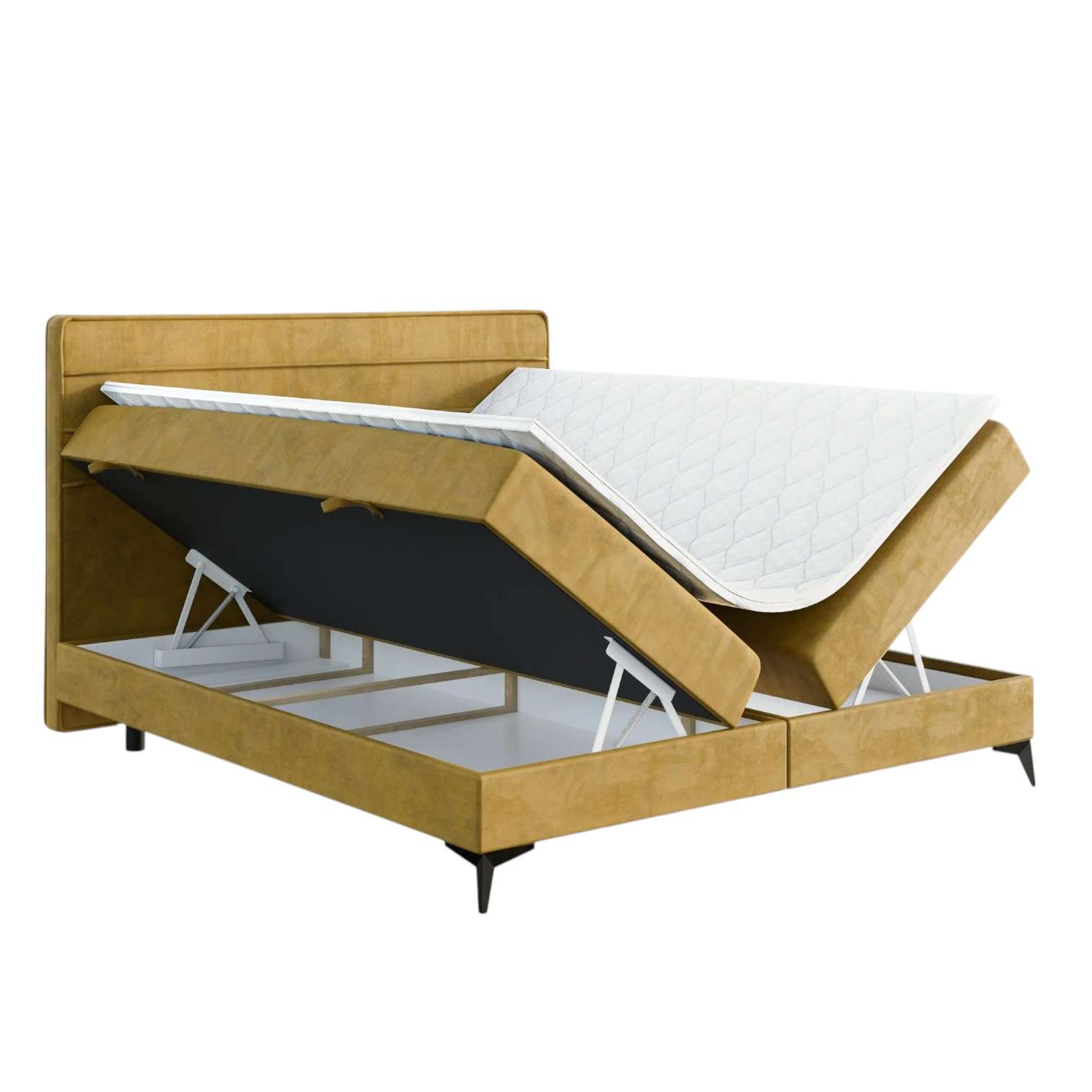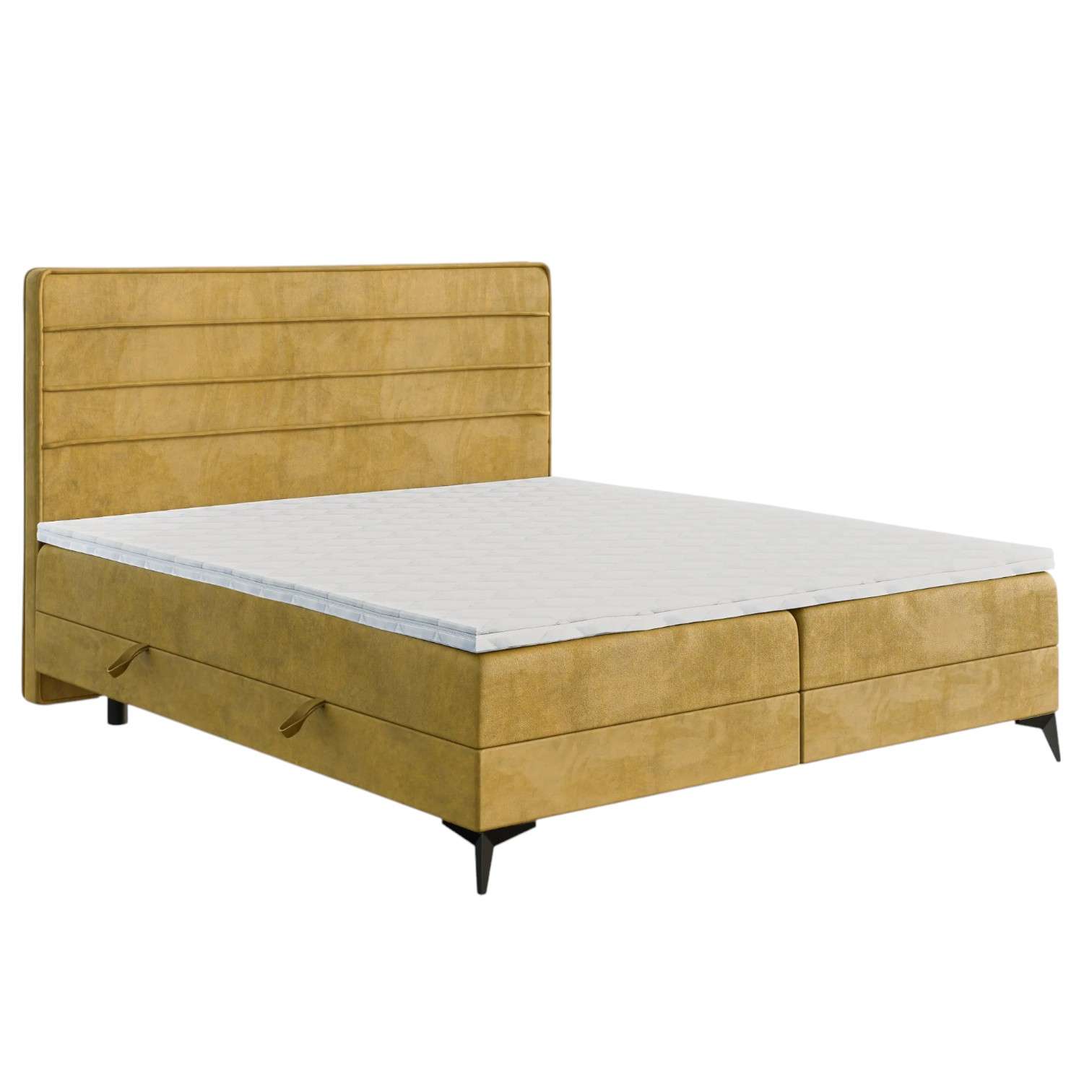 Żółte Łóżko Kontynentalne HORIZONE 180x200 cm z Pojemnikiem na Pościel