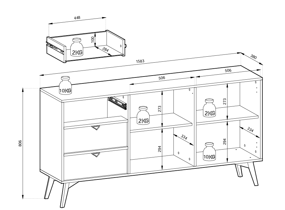 ✅Płynne otwieranie: Prowadnice na łożysku kulkowym Häfele zapewniają pełny wysuw szuflad i ciche domykanie, co znacznie ułatwia korzystanie z komody.✅Zawiasy wysokiej jakości: Zawiasy Häfele gwarantują trwałość i niezawodność działania drzwi.✅Pojemne wnętrze: Komoda posiada trzy szuflady i dwie szafki z półkami, dzięki czemu pomieści wiele różnych przedmiotów.