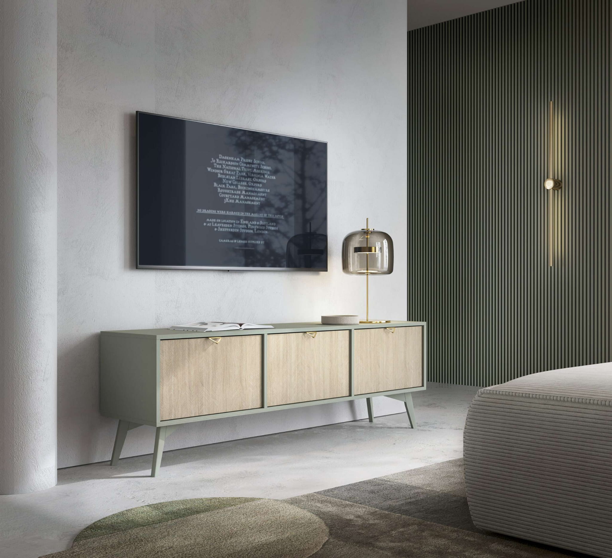 ❗️Oferta dotyczy komody Elegia w kolorze Eukaliptus/Jodełka Scandi, posiadamy również mebel w kolorze Beż Piaskowy/Jodełka Scandi.