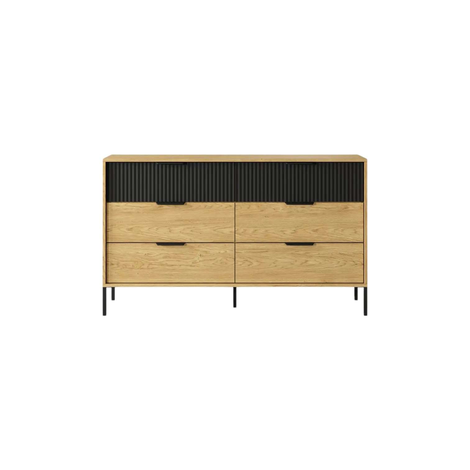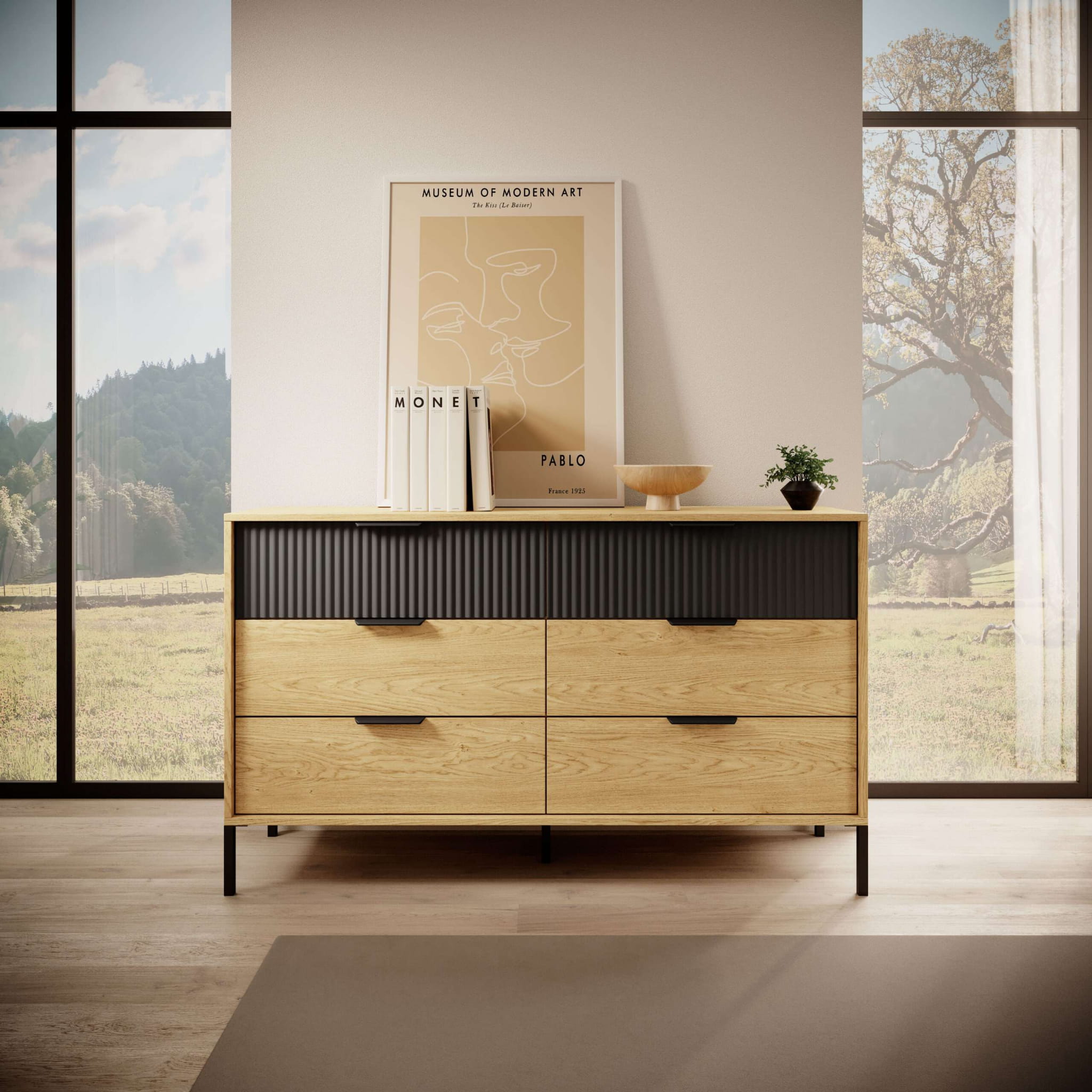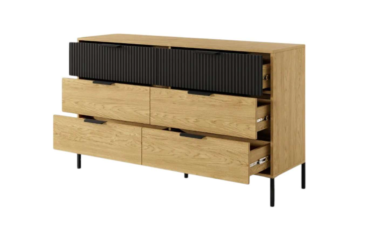 Komoda BALTICA 6 szuflad 138 cm Dąb Baltic+Czarny | Styl i funkcjonalność