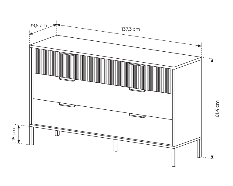 ▪️Uniwersalność: Komoda doskonale sprawdzi się w różnych częściach domu – w sypialni, salonie, przedpokoju czy biurze. Dzięki neutralnej kolorystyce łatwo ją dopasować do innych elementów wyposażenia.