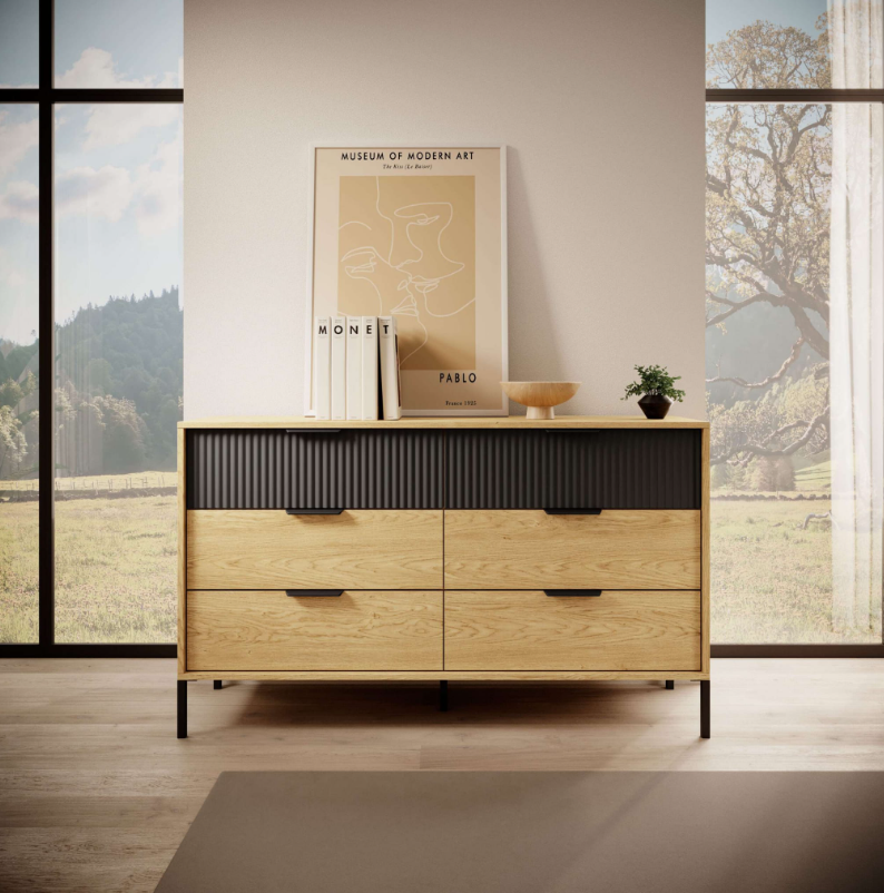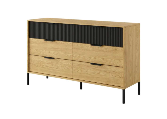 ▪️Elegancki design: Połączenie naturalnego dębu baltic z czarnymi akcentami sprawia, że komoda BALTICA pasuje do nowoczesnych, minimalistycznych oraz industrialnych wnętrz.