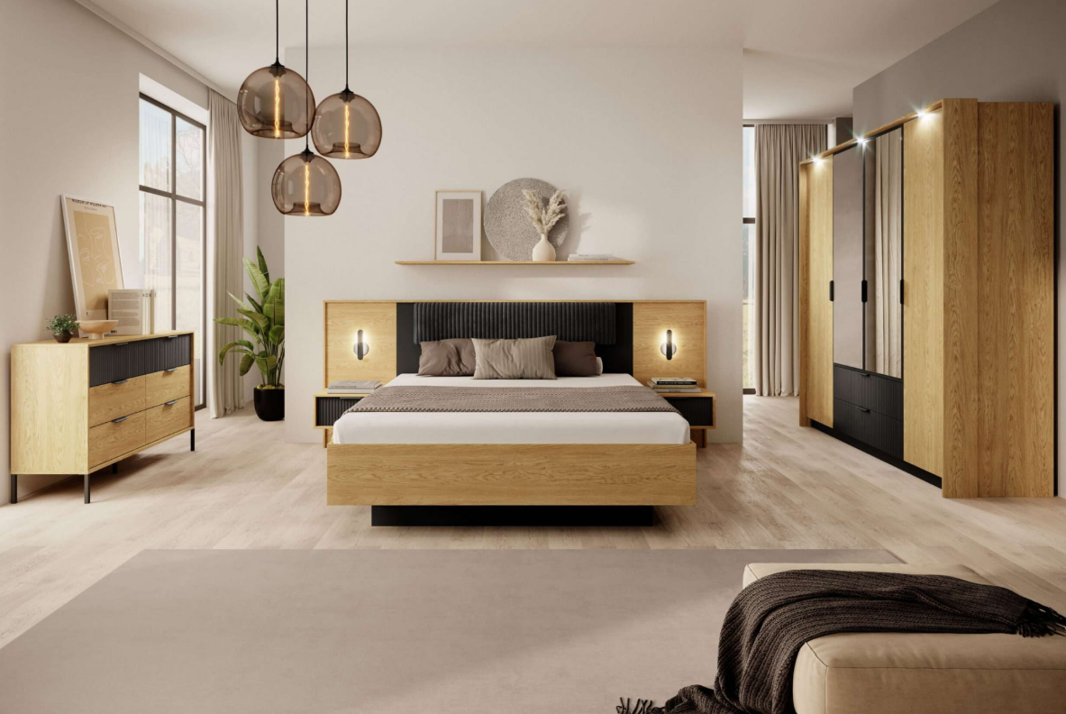 Kolekcja BALTICA to pełna harmonia elegancji, nowoczesności i funkcjonalności, która pozwoli Ci stworzyć spójną aranżację w każdym pomieszczeniu. W skład kolekcji wchodzą: stylowa komoda, funkcjonalne łóżko z pojemnikiem na pościel, dwa eleganckie stoliki nocne oraz przestronna szafa – każdy element zaprojektowany z myślą o estetyce i praktycznym wykorzystaniu przestrzeni. Dzięki połączeniu ciepłego dębu baltic z kontrastującymi czarnymi detalami, meble te doskonale komponują się w nowoczesnych, minimalistycznych oraz industrialnych wnętrzach. Zestaw BALTICA to idealna propozycja, by urządzić wnętrze w sposób elegancki i funkcjonalny, tworząc spójną przestrzeń, która zachwyci zarówno domowników, jak i gości.