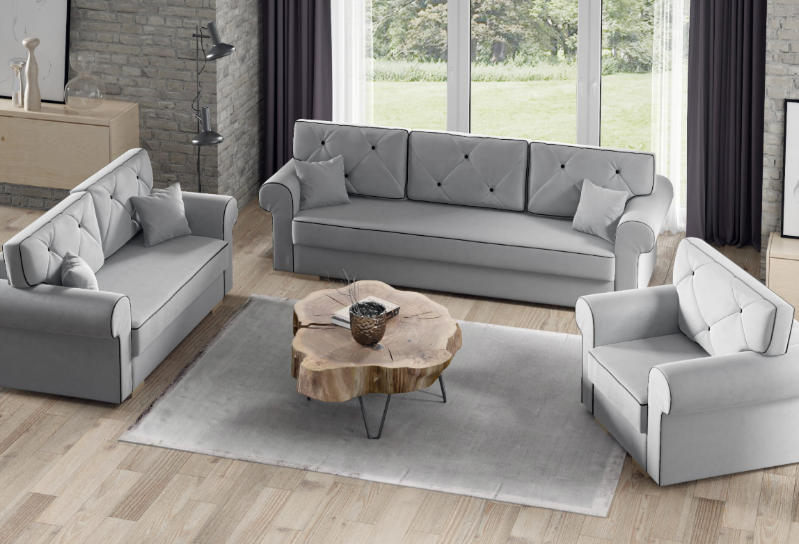 ✅Stylowy design: Pikowane oparcie i podłokietniki oraz ozdobne guziki nadają sofie wyjątkowego charakteru.