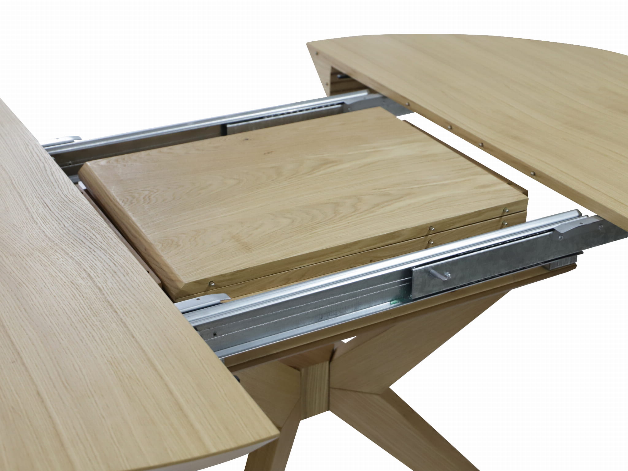 ▪️ Wkładki: Dwie wkładki chowane pod blatem, pozwalające na rozłożenie stołu do 180 cm (z jedną wkładką) lub 230 cm (z dwiema wkładkami).