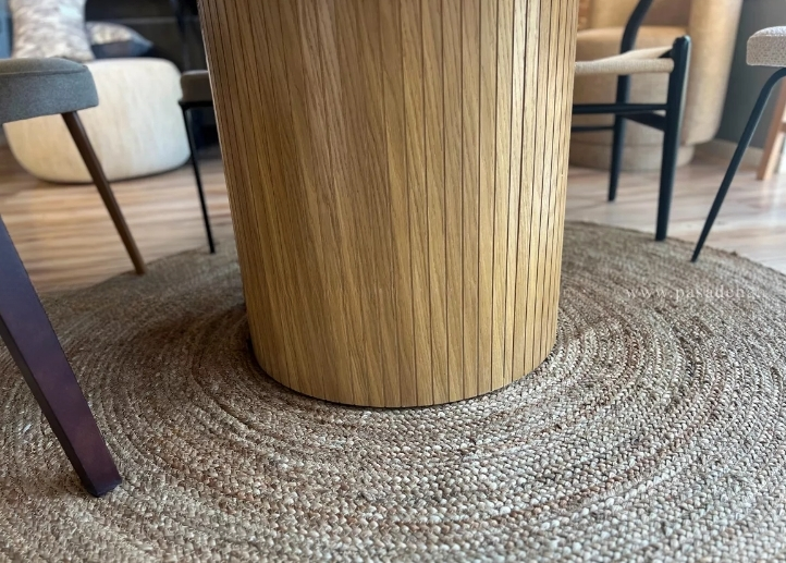 ▪️ Stół LILITH to doskonały wybór dla każdego, kto pragnie połączyć funkcjonalność z estetyką. Jego elegancki, okrągły kształt i ryflowana noga nadają mu niepowtarzalny charakter, idealnie wpisując się w nowoczesne oraz klasyczne wnętrza. Dzięki wysokiej jakości materiałom, takim jak płyta MDF pokryta naturalnym fornirem dębowym, stół jest nie tylko piękny, ale także niezwykle trwały i odporny na zarysowania oraz wysoką temperaturę.