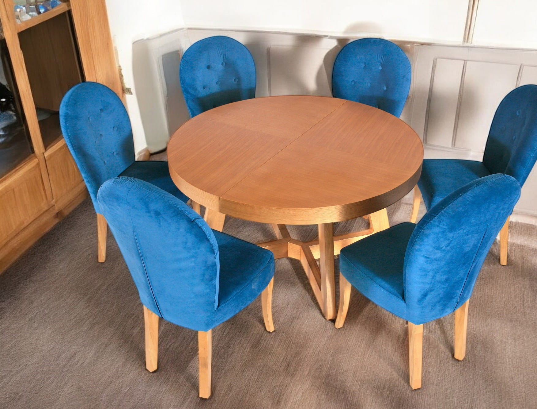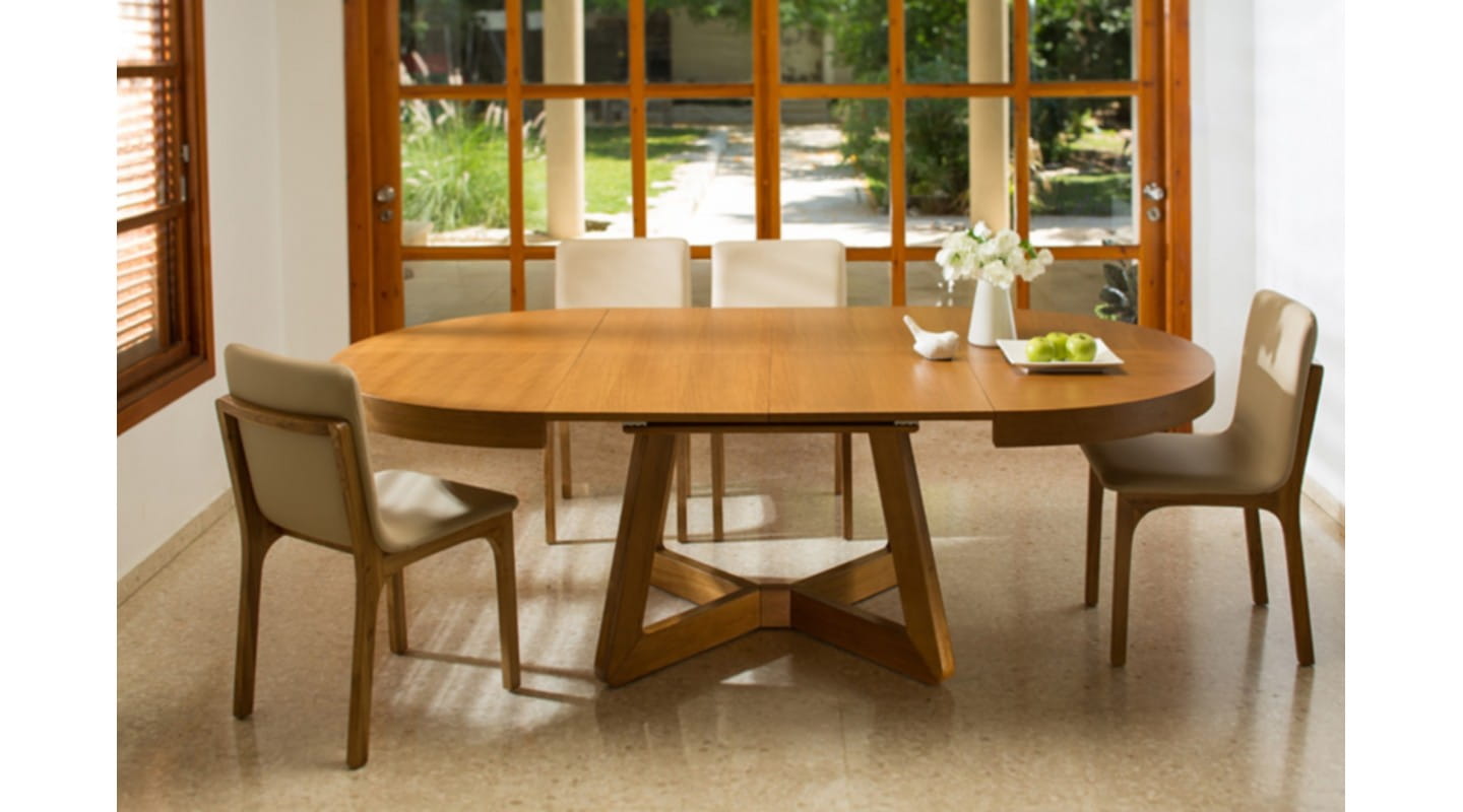 ▪️ Blat o średnicy 130 cm, który po rozłożeniu osiąga długość 230 cm – idealny do wspólnych posiłków