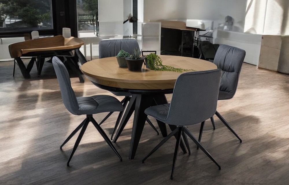 Stół PHILIP to elegancki okrągły, który dzięki funkcji rozkładania sprawdzi się zarówno w kameralnych, jak i większych spotkaniach. Jego wyjątkowy design, połączenie naturalnego forniru dębowego z metalową podstawą, stanowi doskonały wybór dla osób ceniących nowoczesność i trwałość.