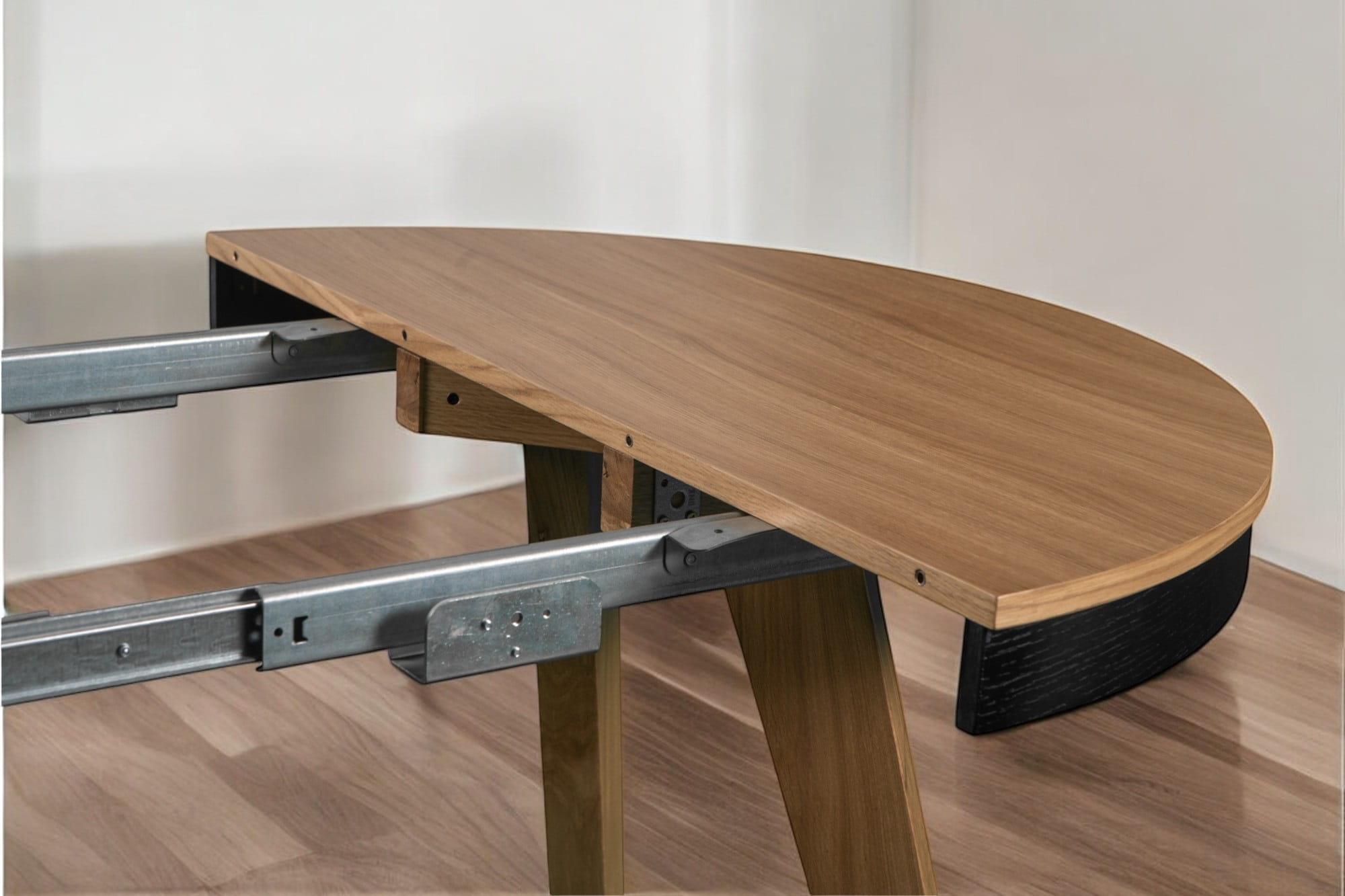 ▪️ Rozsuwany blat: Wysokiej jakości system rozsuwania z stabilną prowadnicą teleskopową (dwie wkładki nie są chowane pod blat)..