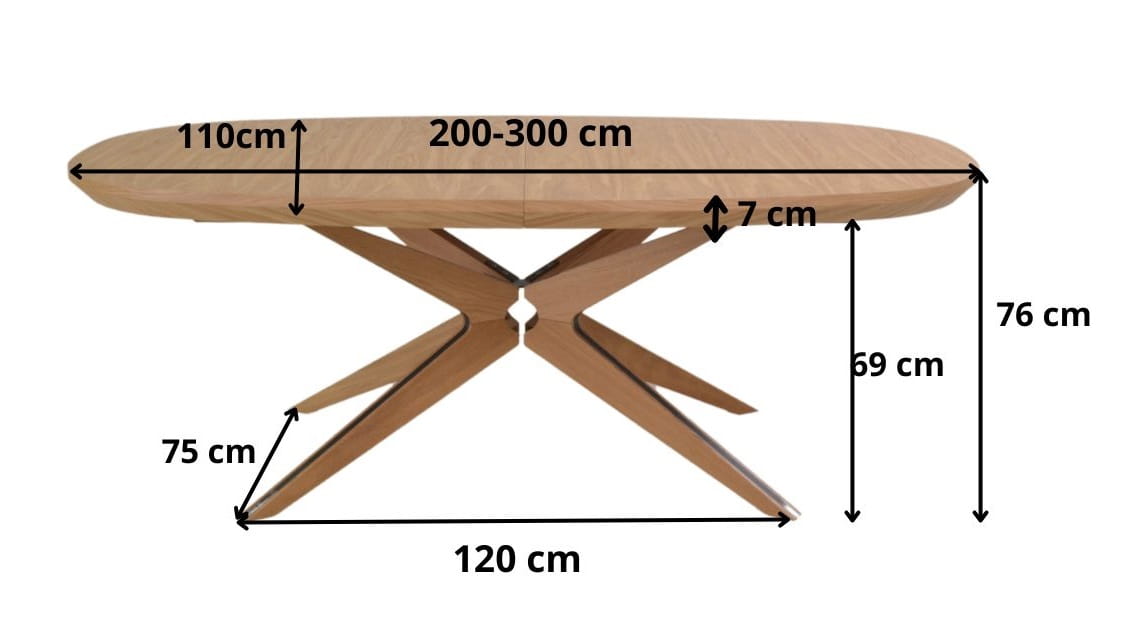 ▪️ Długość po rozłożeniu: 250 cm lub 300 cm (dwie wkładki zwiększają stół o 50 cm)