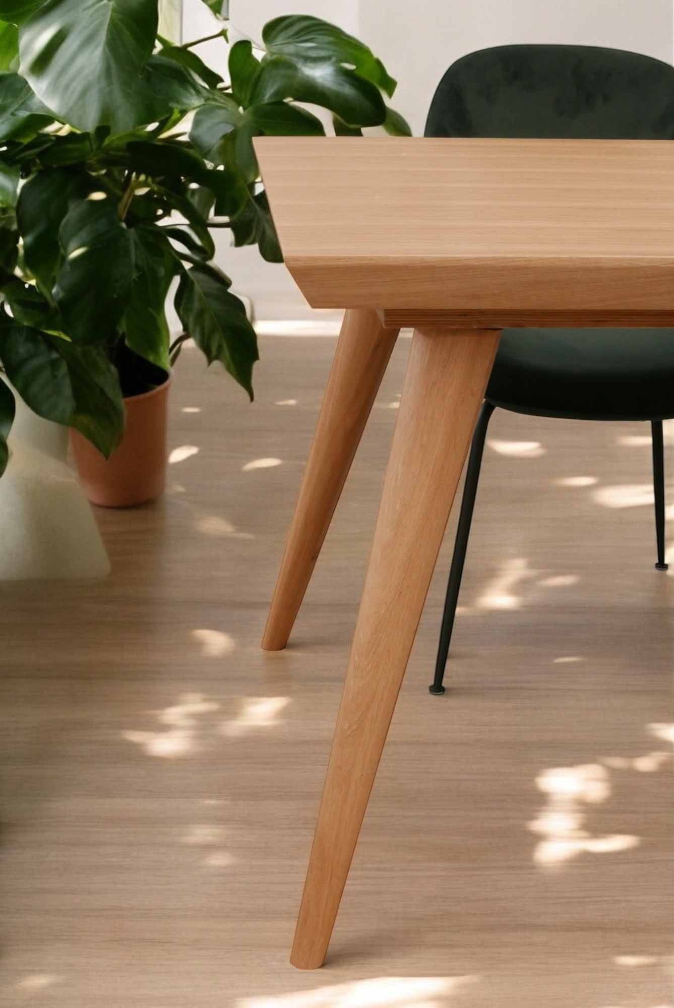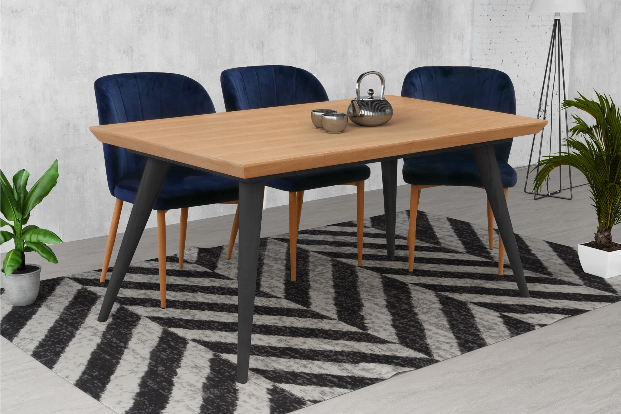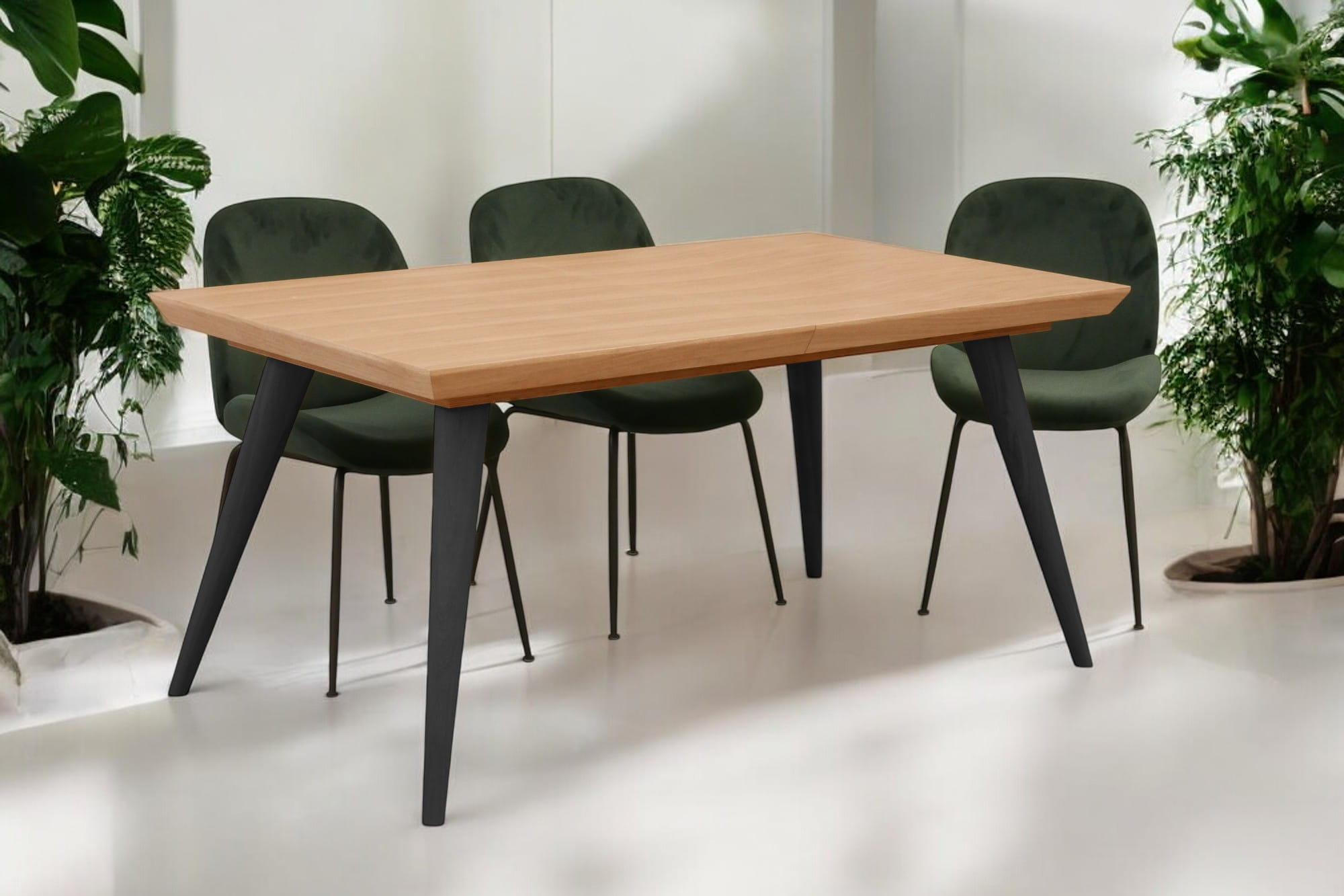 ▪️ Estetyka i praktyczność – blat i krawędzie oklejone fornirem dębowym, co sprawia, że stół wygląda jak z litego drewna