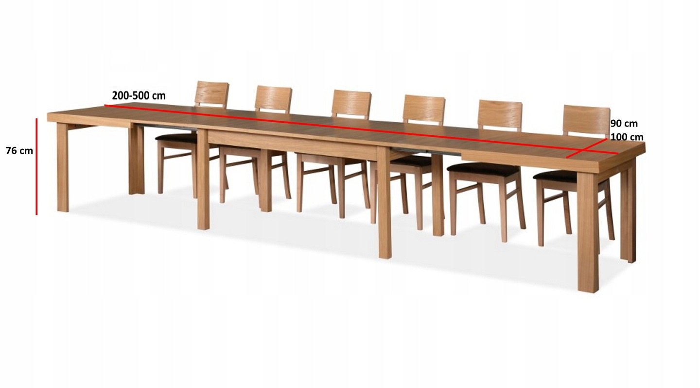 ▪️ Rozkładany blat: Stół o długości 200 cm może być rozłożony do 500 cm, co pozwala na komfortowe biesiadowanie nawet w dużym gronie.