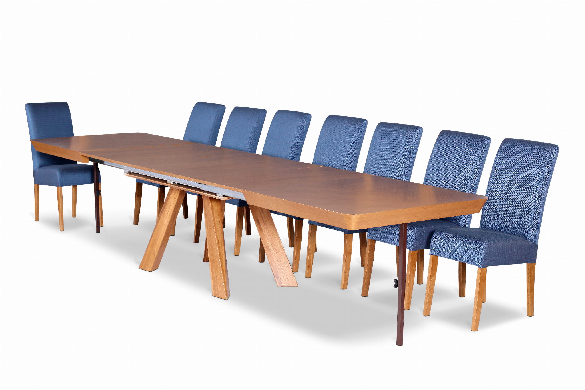 ▪️ Wkładki: Każdy stół posiada cztery wkładki o szerokości 50 cm, które chowane są pod blatem.